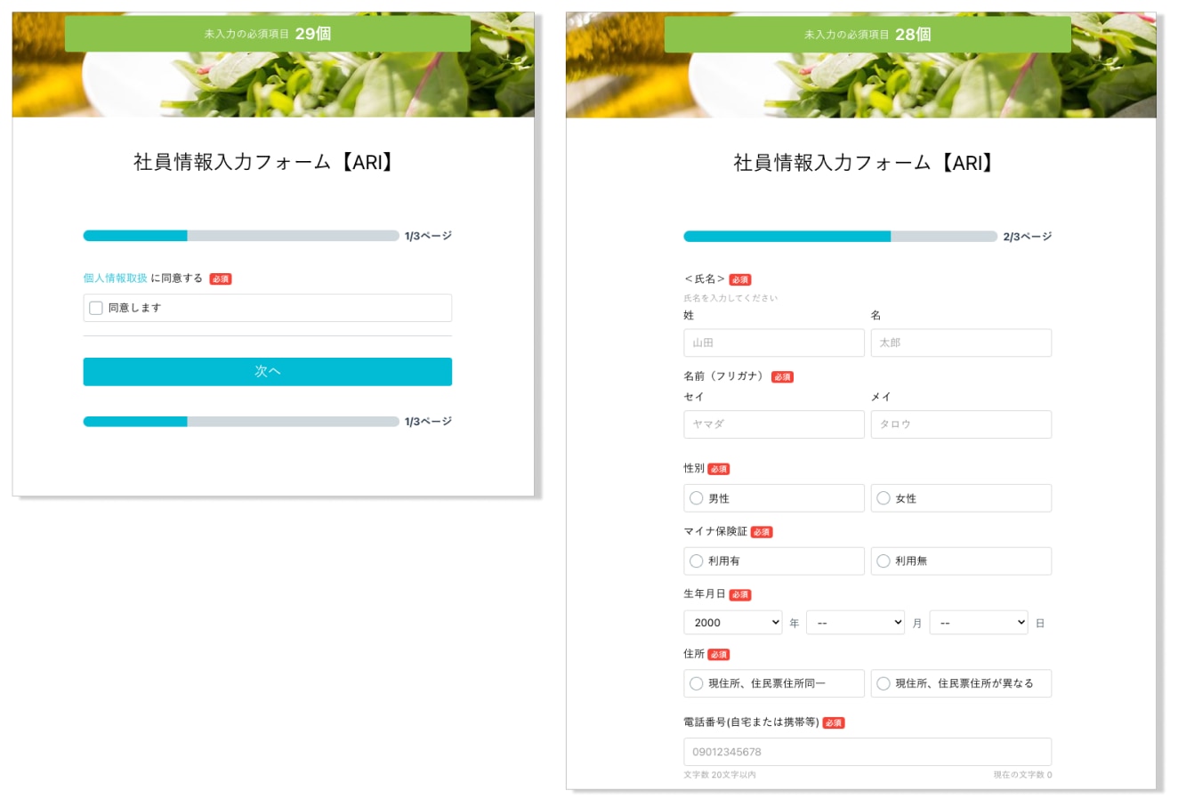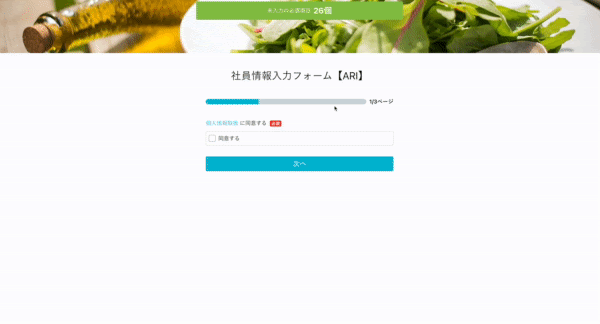 EFO:縦長になってしまうフォームをページ分割することで、社員の入力負荷を軽減。ITリテラシーに差のある現場でもクレームが起きづらい設計に。