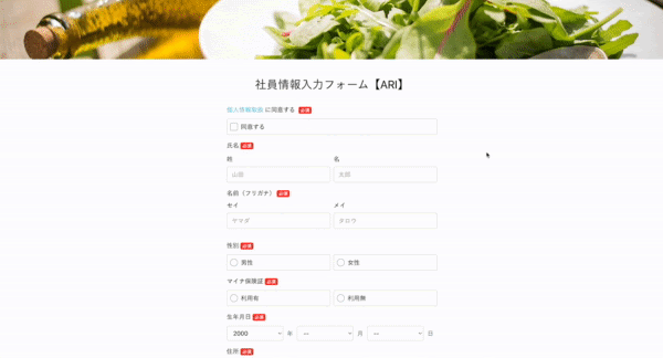 契約社員には既存の人事システムを適用できない都合上、formrunを通じて必要情報を収集し、社内で処理・管理を行っています。