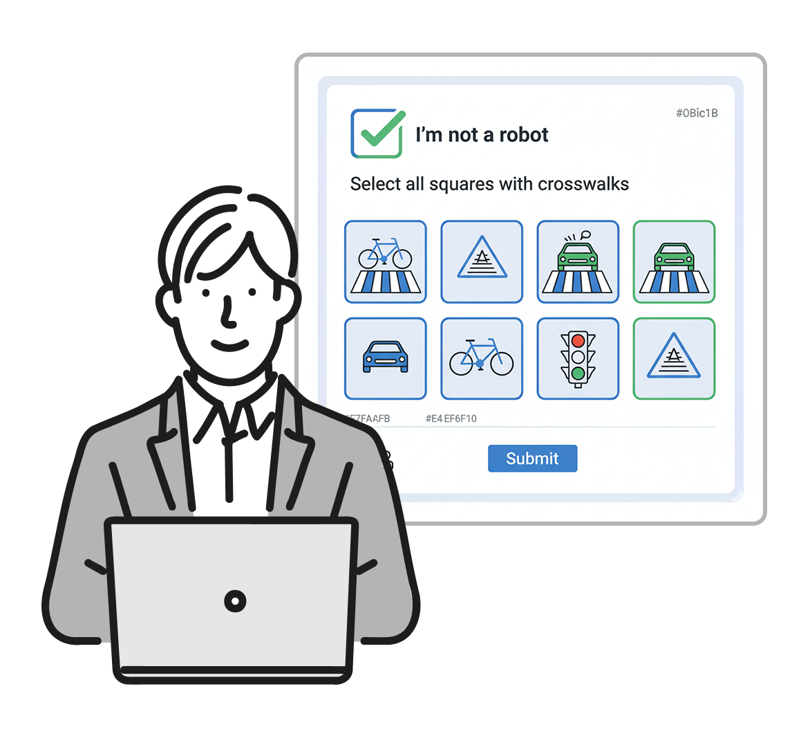 reCAPTCHAは、ユーザーの行動や操作データをもとに、人間か自動プログラムかをAIが判定しています。 裏側では、クリックやマウスの動き、ページ滞在時間などの情報を分析し、「自然な人間の行動」と一致しないものをスパムとみなします。