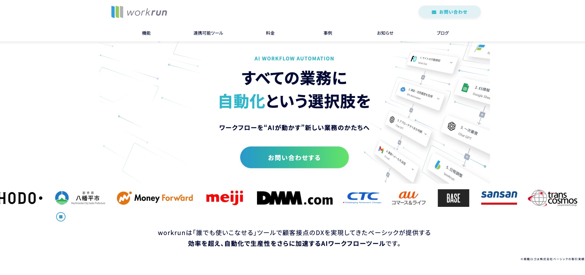 AI自動化ツールのworkrunを使えば、サイトからの問い合わせをCRMへ即座に自動同期できます。
