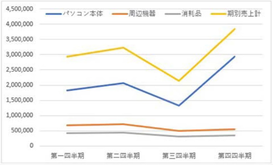 折れ線グラフは、時間の経過にともなうデータの変化を把握する形式です。