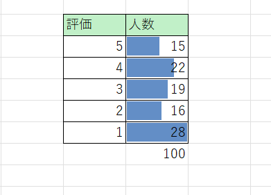 棒グラフは人数比較に最適で、どの評価が多いか一目で分かります。