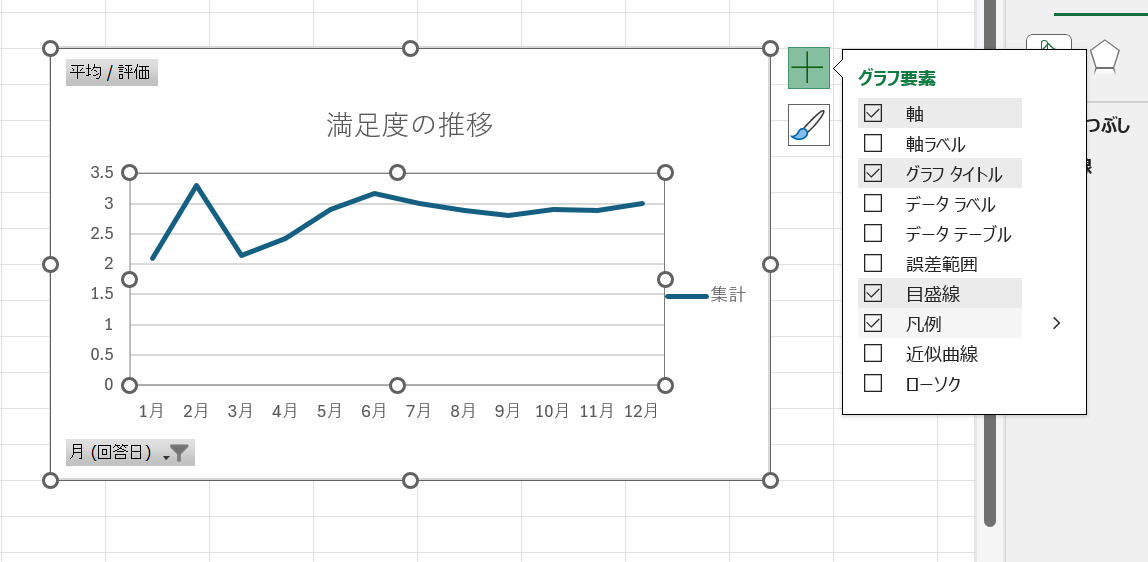 - 「満足度の推移」といったタイトルをつけるとわかりやすいです。