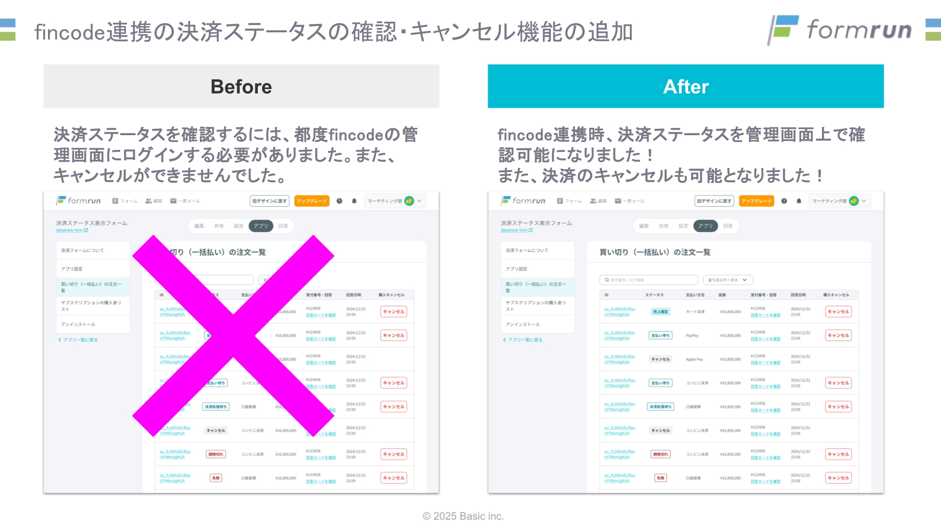 これまでは決済ステータスを確認したい場合、fincodeの管理画面にログインする必要がありましたが、これからはformrunの管理画面から直接確認できるようになりました。