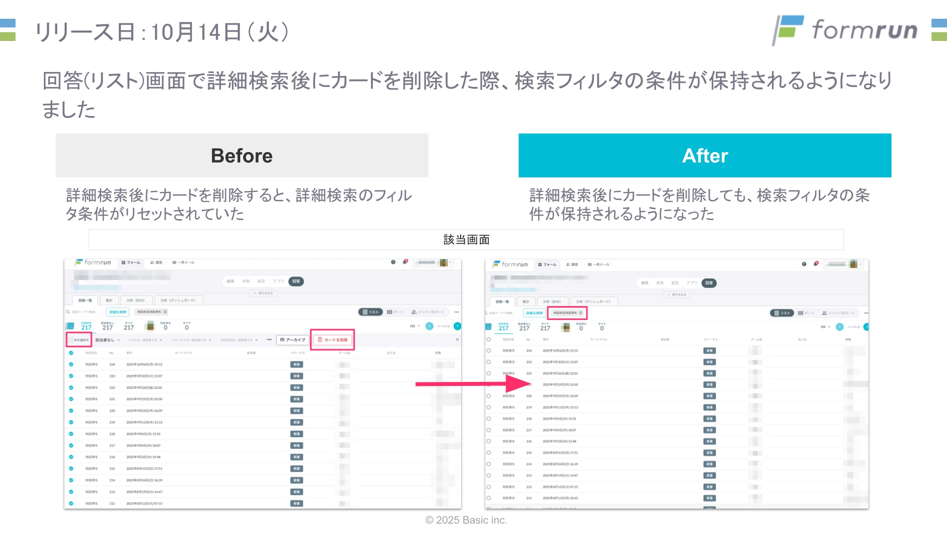 回答(リスト)画面で詳細検索後にカードを削除した際、検索フィルタの条件が保持されるようになりました