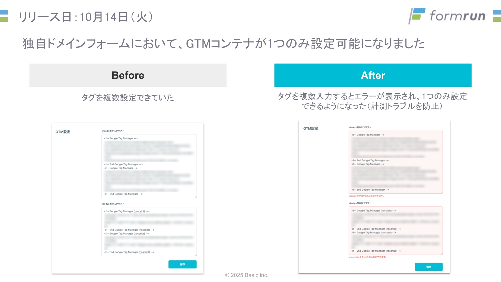 独自ドメインフォームにおいて、GTMコンテナが1つのみ設定可能になりました