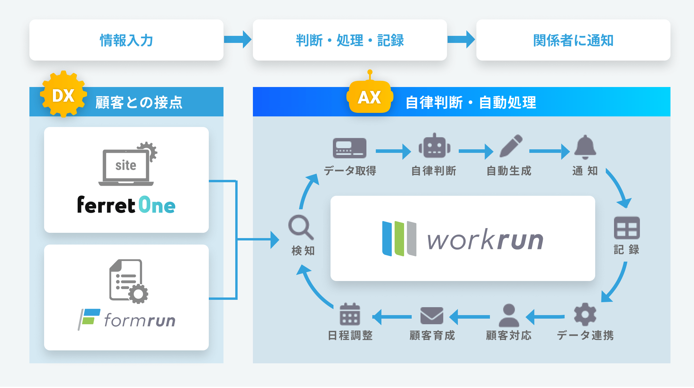 formrunで受け付けた問い合わせ対応など、部門をまたぐ業務フロー全体をAIで自動化する、新たな業務体験の提供をスタートさせました。