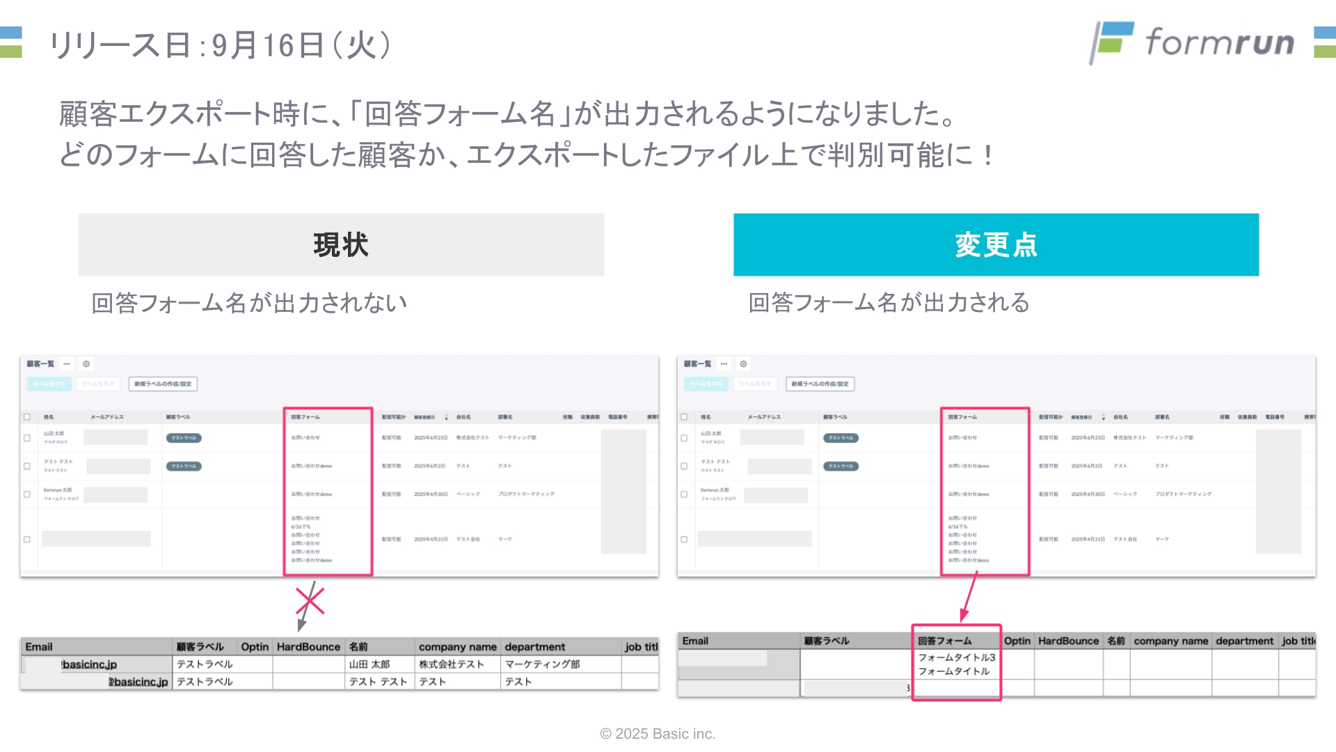 今回の改善により、エクスポート時に回答フォーム名が出力されるようになりました。