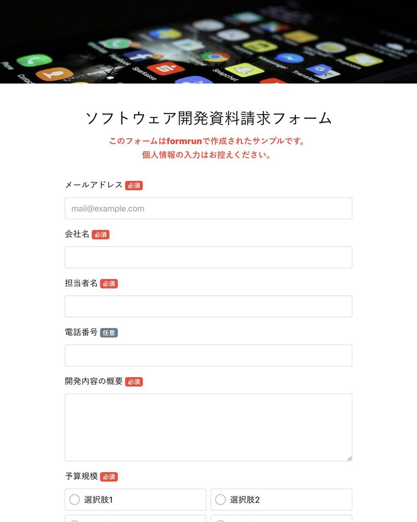 「ウェブデザイン資料請求フォーム」の管理業務を簡単にするため、formrunというサービスをご紹介します。さらに、サンプルテンプレートも用意しておりますので、すぐに利用可能です。お客様の要望に合わせてフォームのカスタマイズも可能です。手間と時間を削減し、業務効率を改善できるformrunをぜひご活用ください。