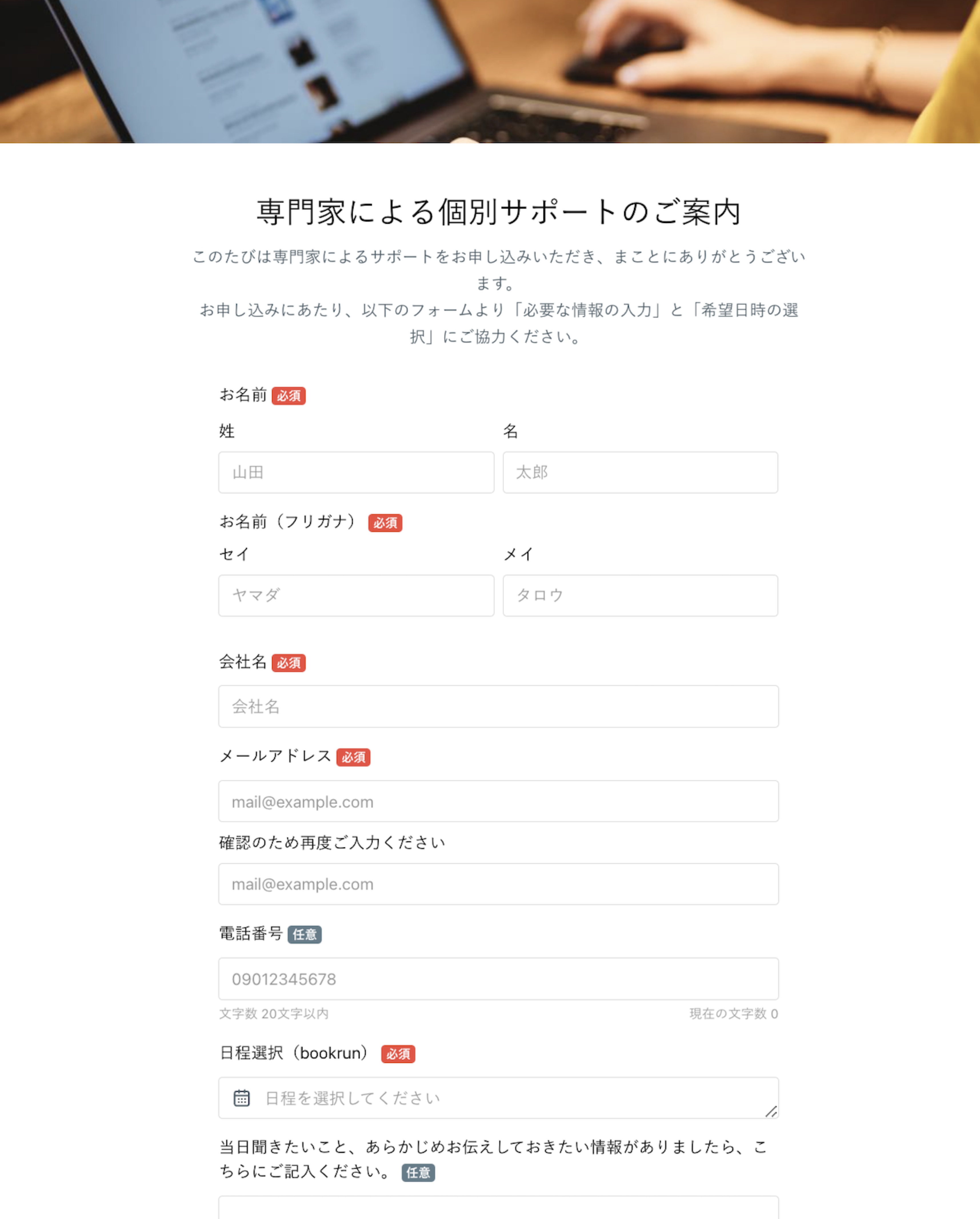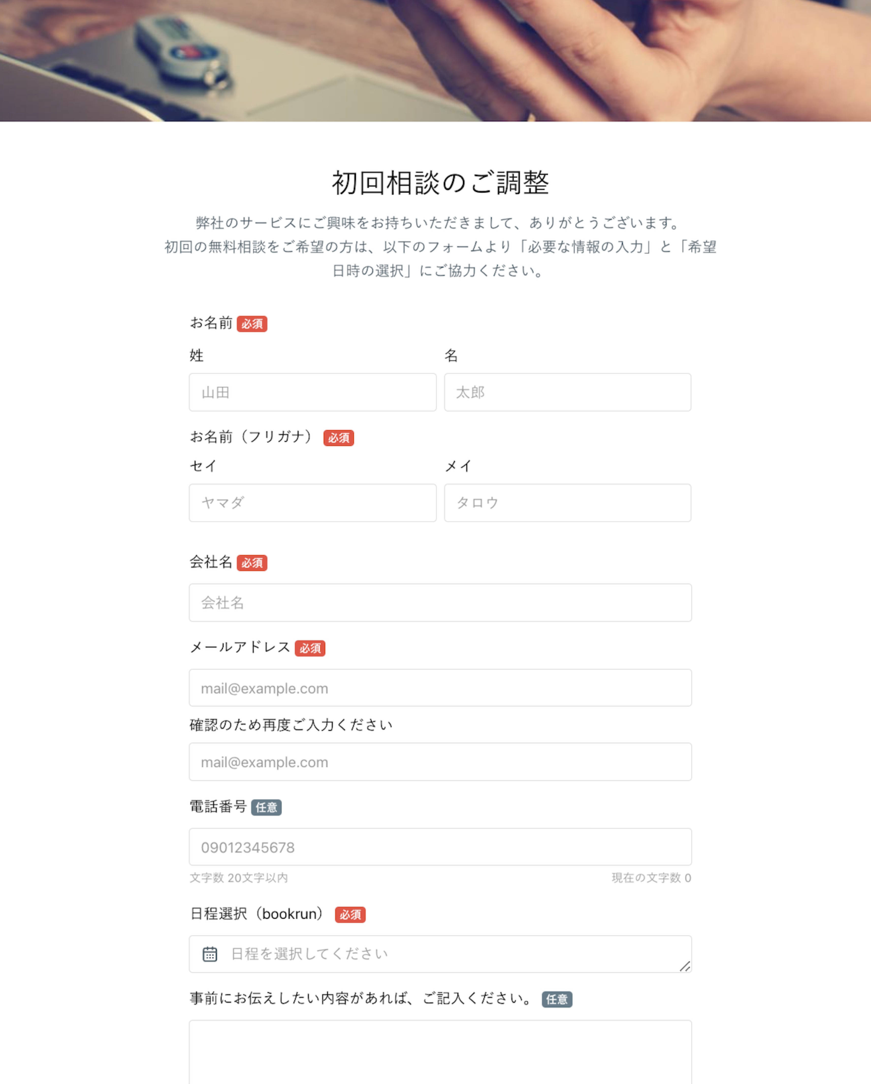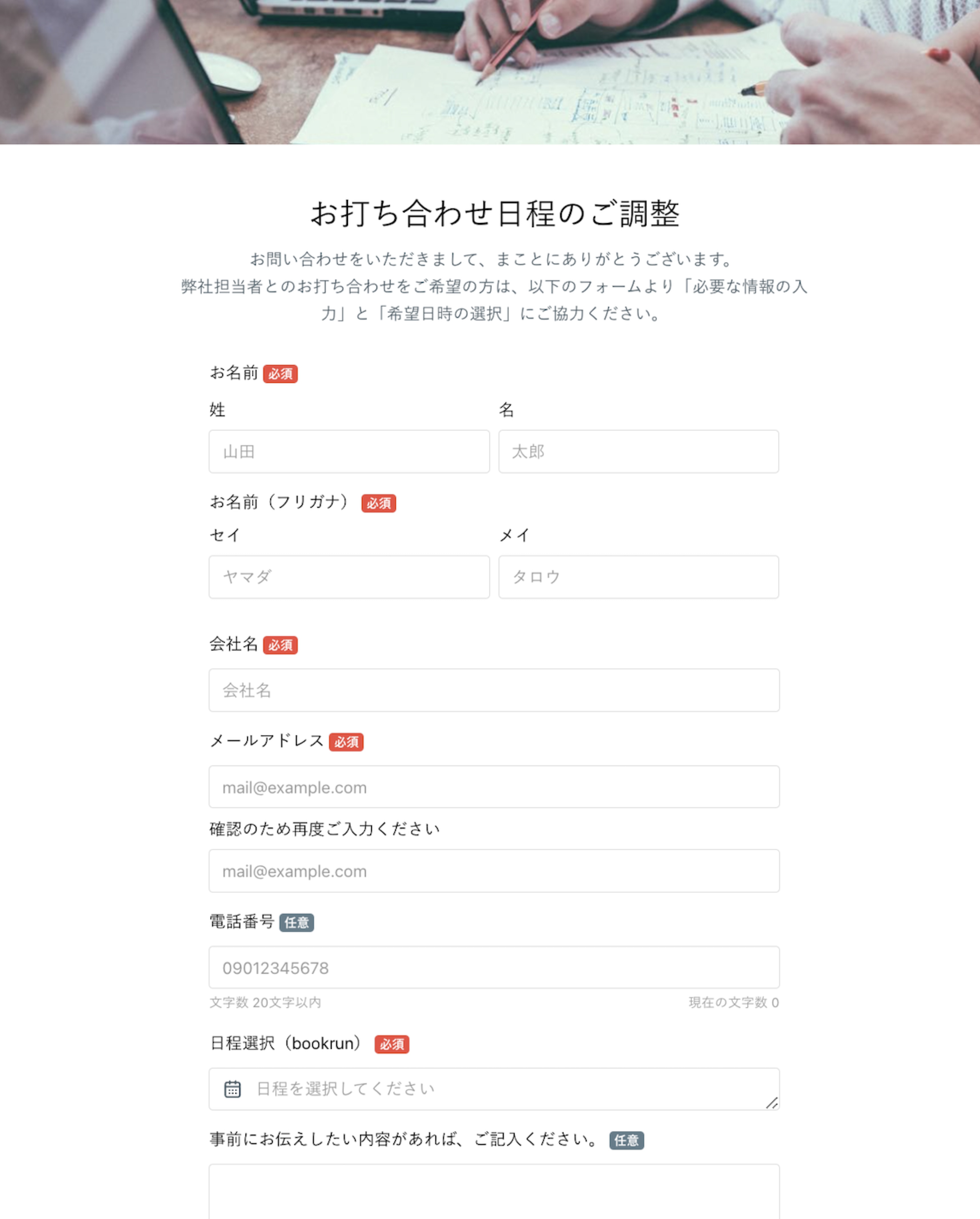bookrunとは、予約日程調整に特化したformrunの姉妹サービスです。