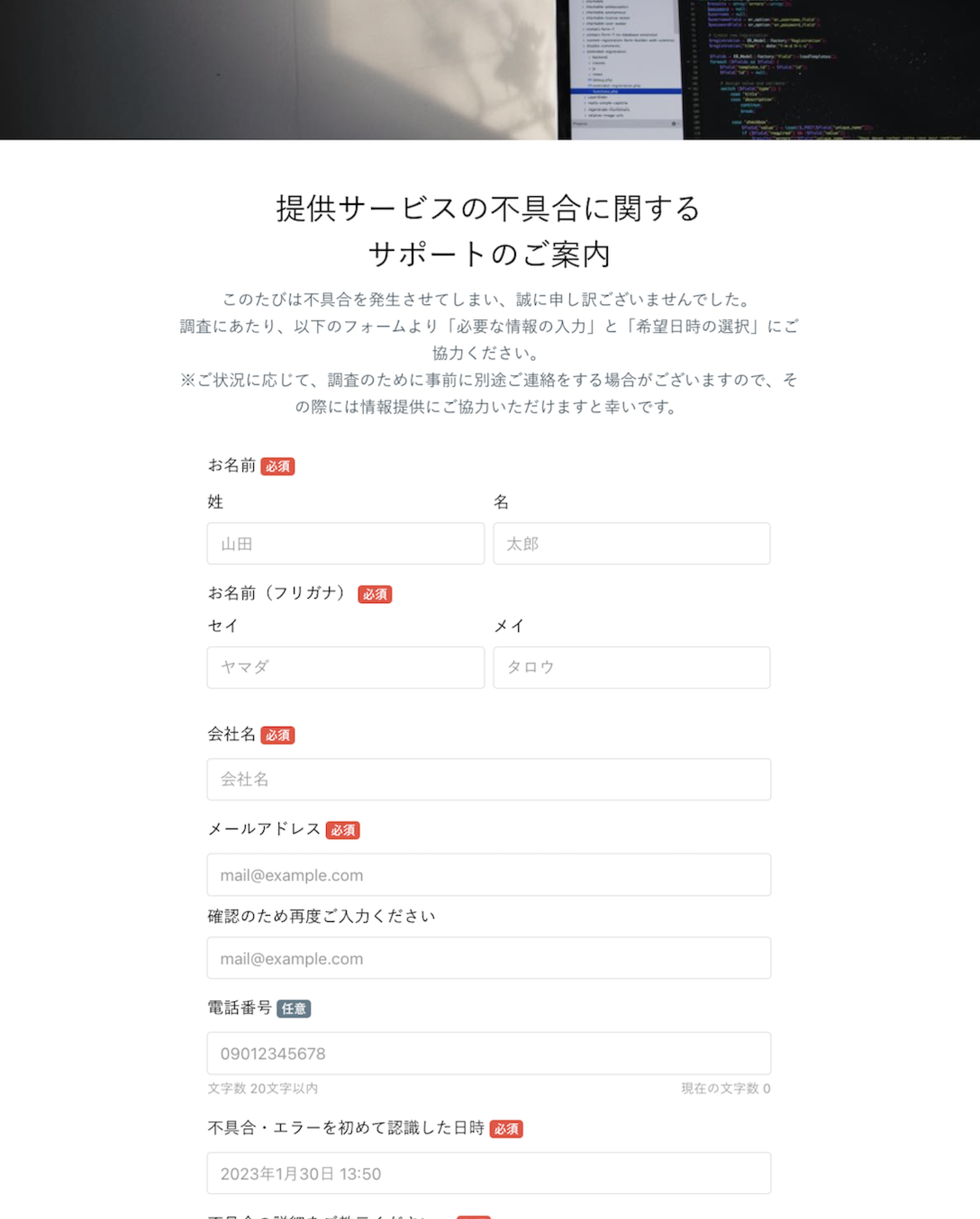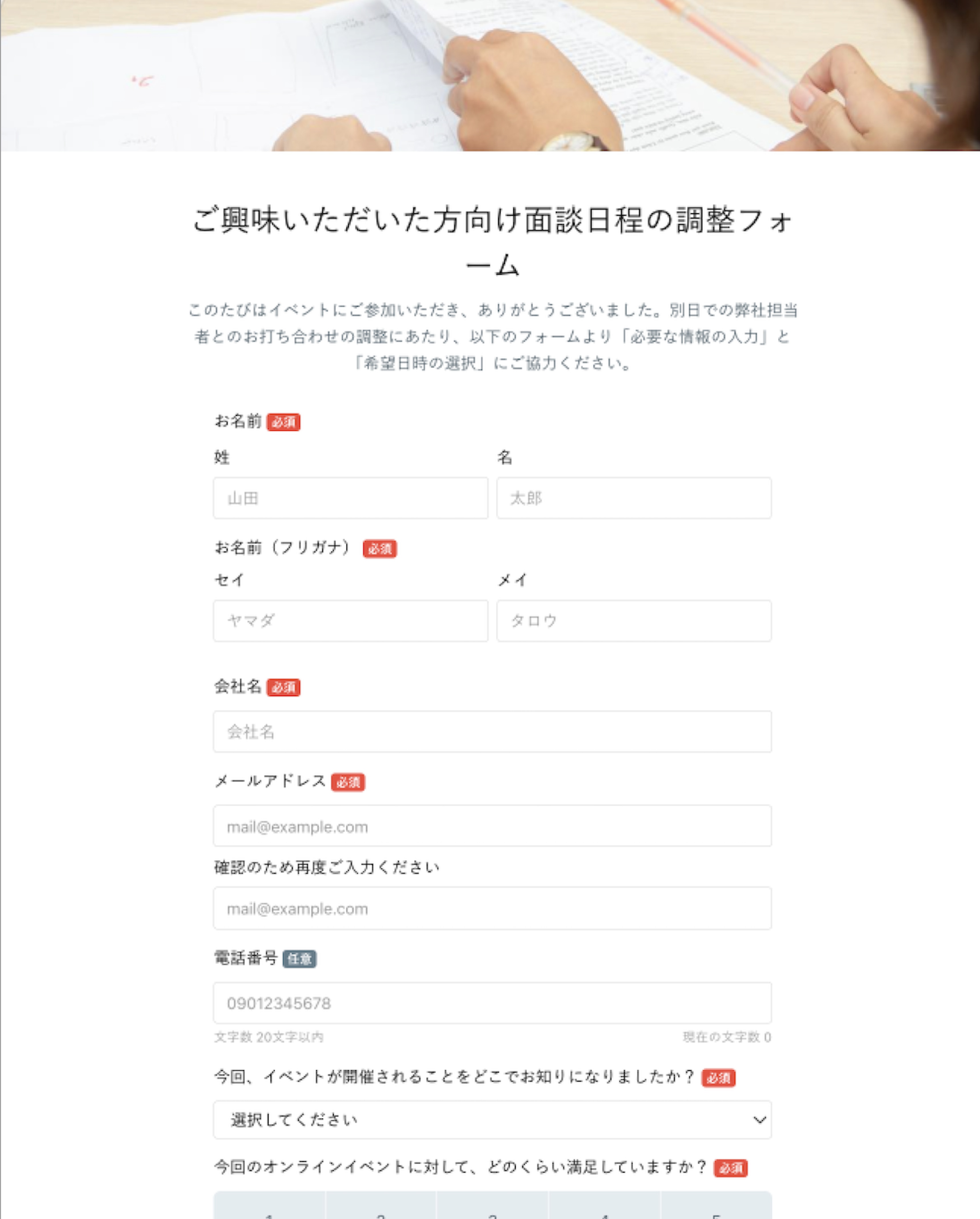 「formrun」で作成したフォームに日程調整項目を挿入することで、フォーム訪問者へ、入力時にそのまま日程調整を促すことができます。