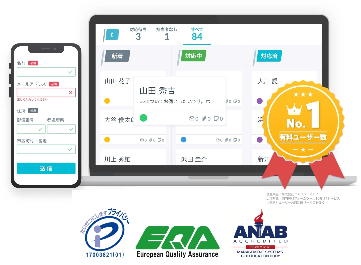 セキュリティに関する様々な認証も取得済みなので、個人情報を安心して管理することができます。