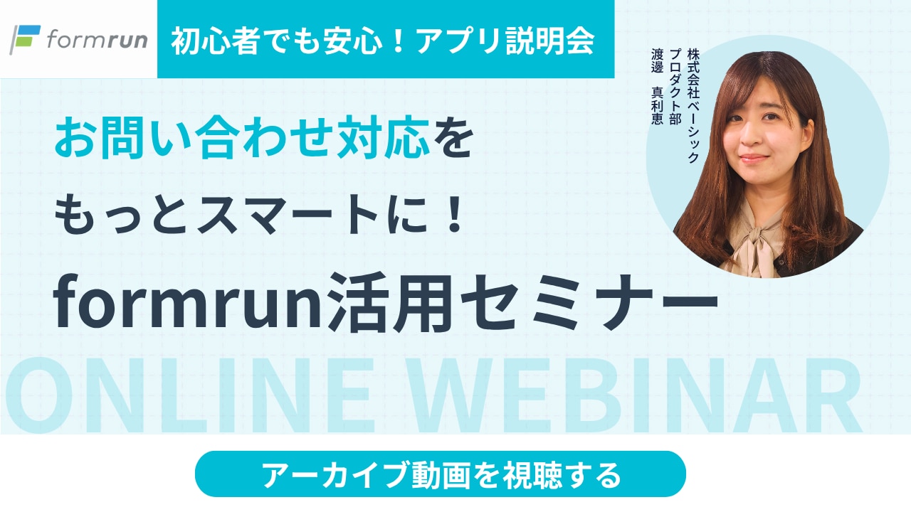 | タイトル | お問い合わせ対応をもっとスマートに!formrun活用セミナー |