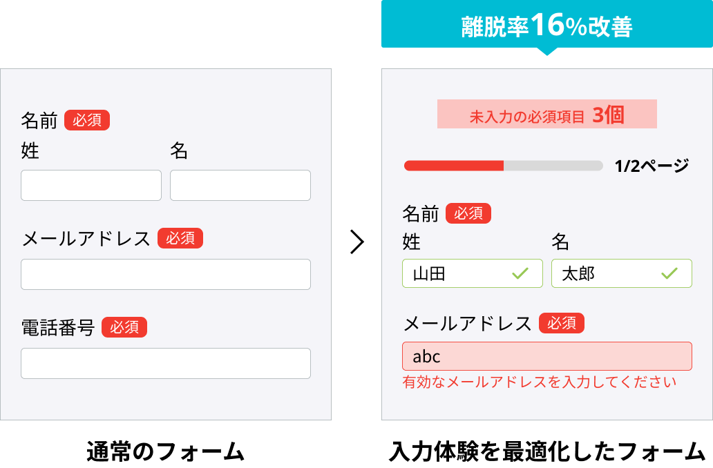 フォームの入力しやすさを向上させることで、