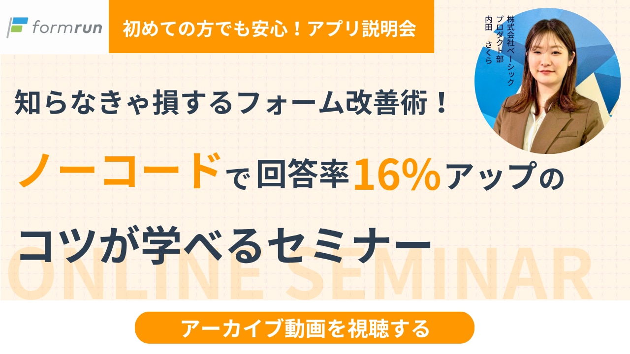 | タイトル | 知らなきゃ損するフォーム改善術!ノーコードで回答率16%アップのコツが学べるセミナー |