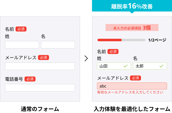 でも、入力途中で離脱されてしまうと、せっかくの集客施策がムダになってしまいますよね。