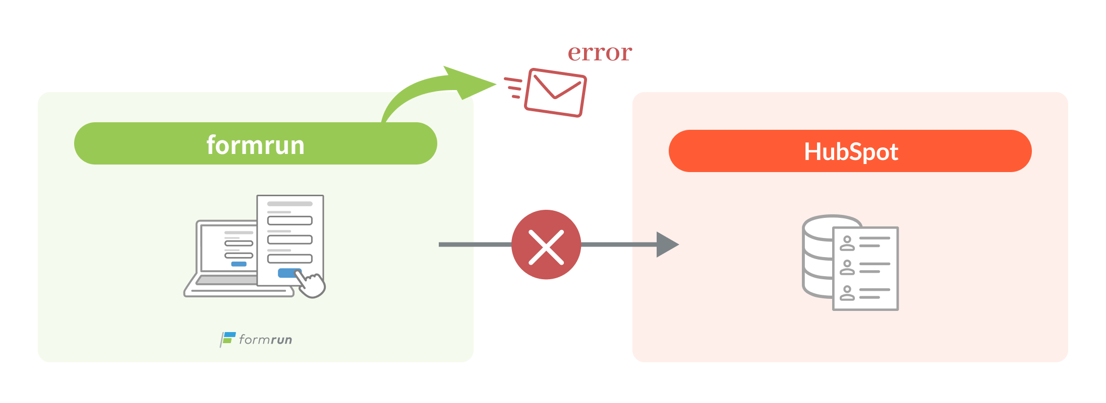 連携時にデータ不備などで発生するエラーをフォームランが即時に検知し、エラー通知のメールを送信します。