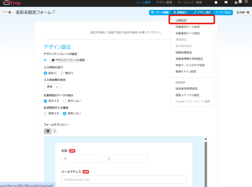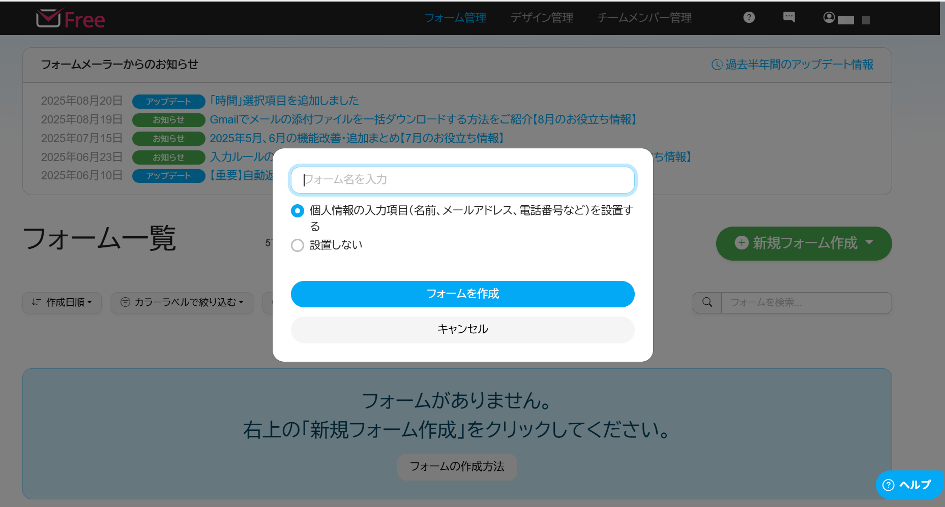 >> 無料でフォームを作成する