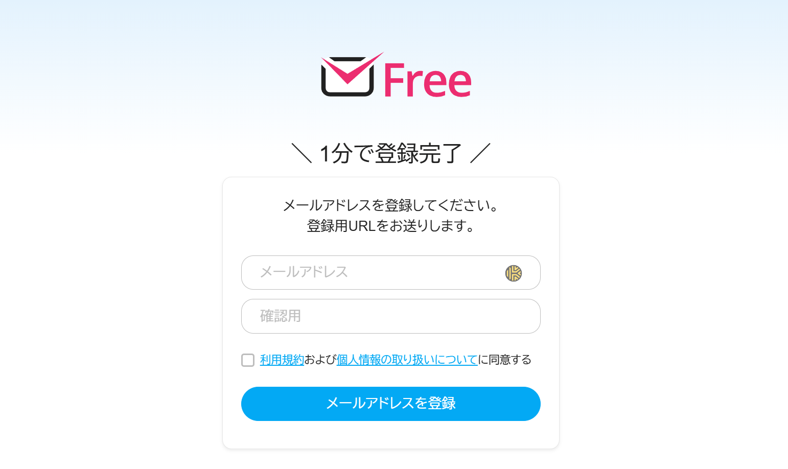 メールアドレスを入力し、登録を進めていきます。【送信する】をクリックすると、登録したメールアドレスにメールが届きますので、指示に従って本登録を行いましょう。