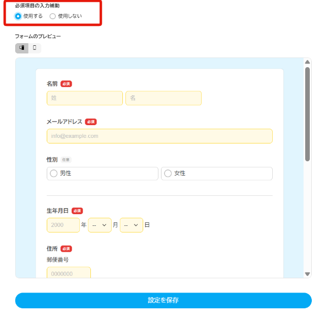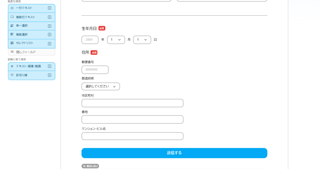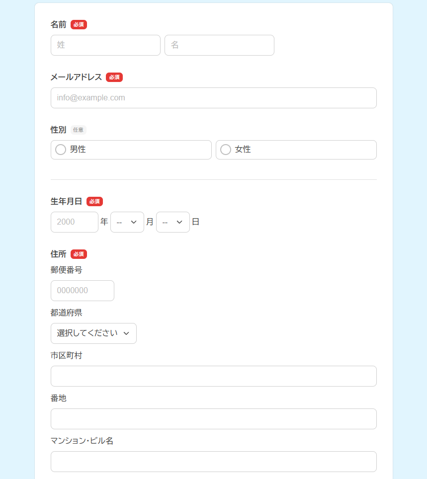 • 氏名・住所などの入力項目