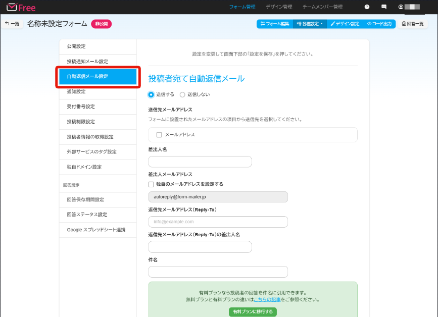 など様々な機能がありますので、フォーム利用の目的を考えた上でプランを選んでください。