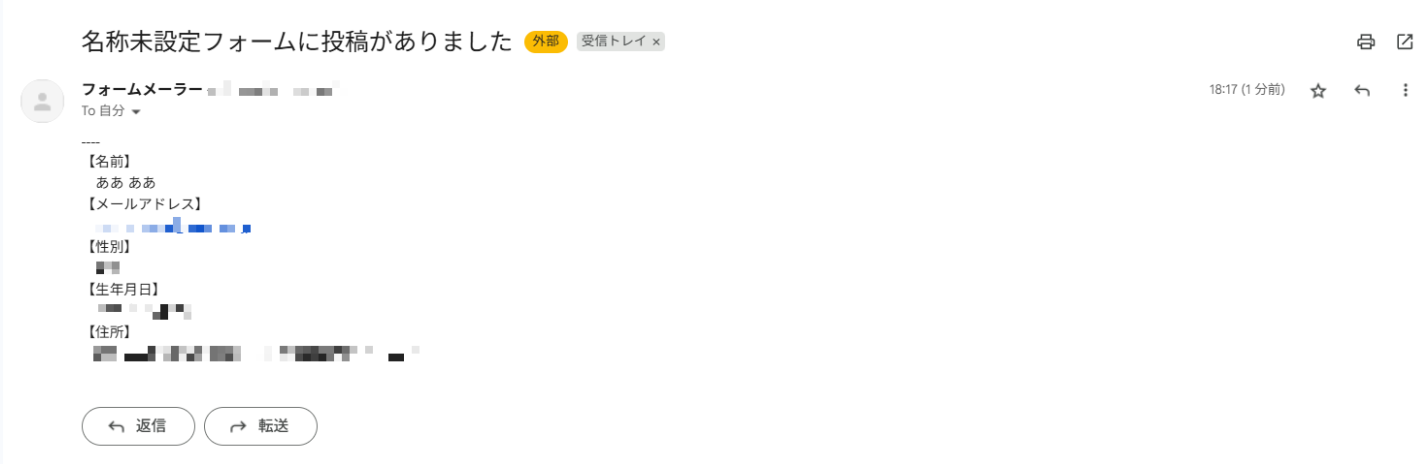完了メッセージが表示され、登録したメールアドレスに自動返信メールが届けば送受信テストが問題なくできていますので、フォームの設置を行います。