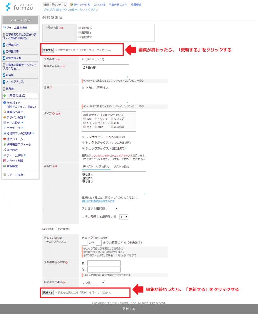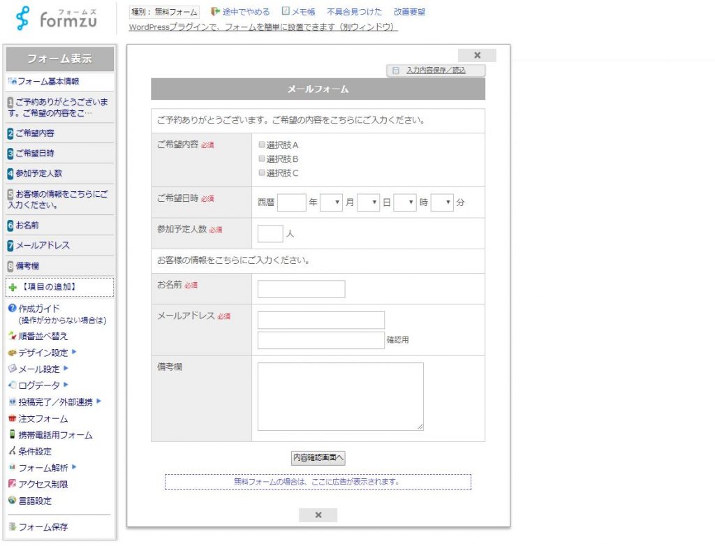 フォーム作成パソコン用/スマホ用/モバイル用のフォームを作成