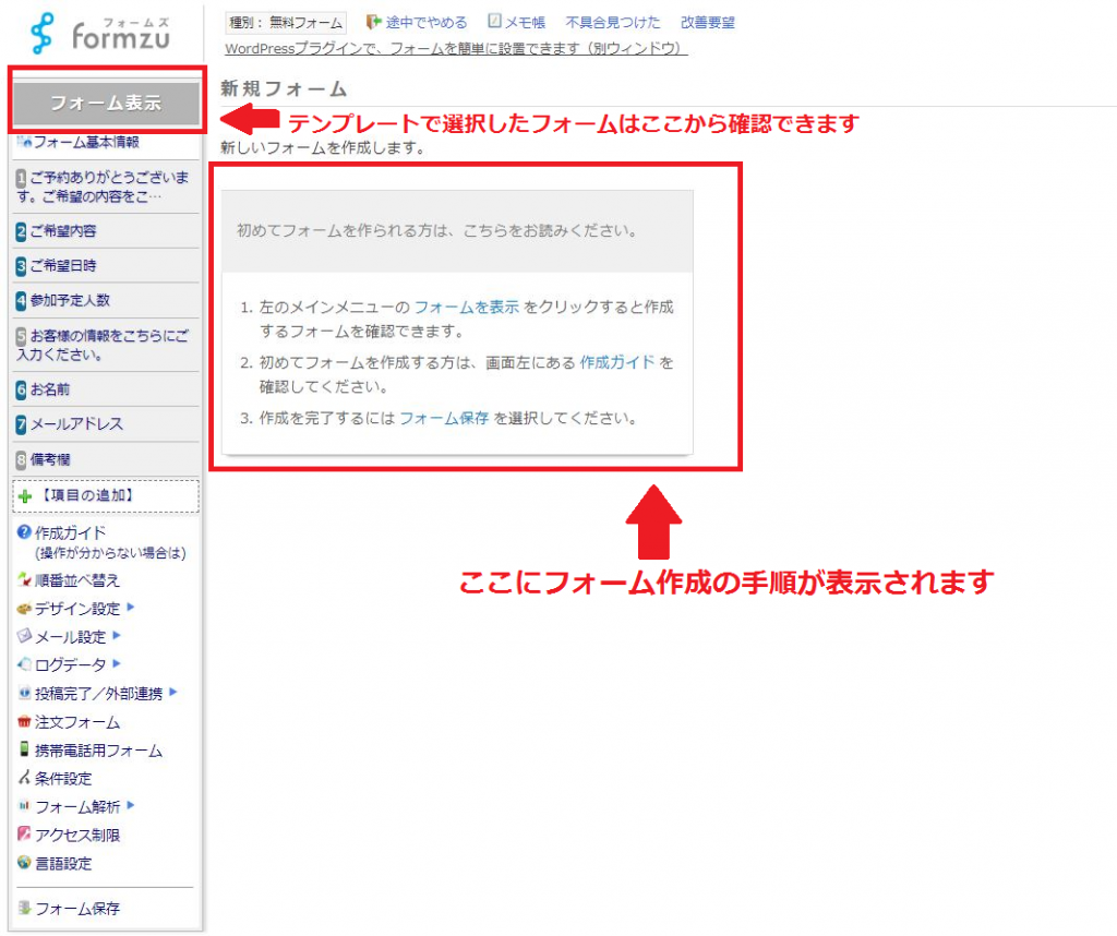 formzuは無料プランでも注文フォームを作成可能です。以下より、注文フォームの基本的な作り方を解説します。