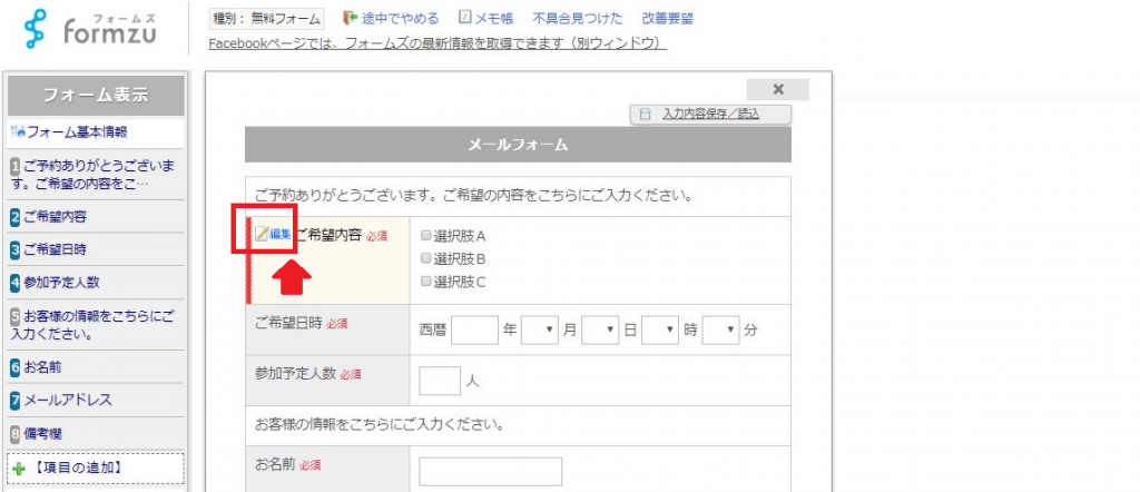ただし、無料プランでは1つのフォームに設置できる項目に制限があるので、フォームの項目数が多い場合には有料プランを利用しましょう。
