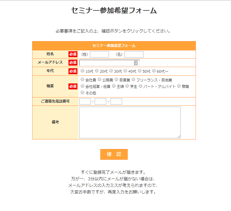 今回は、例として「セミナー参加希望フォーム」を作成していきます。
