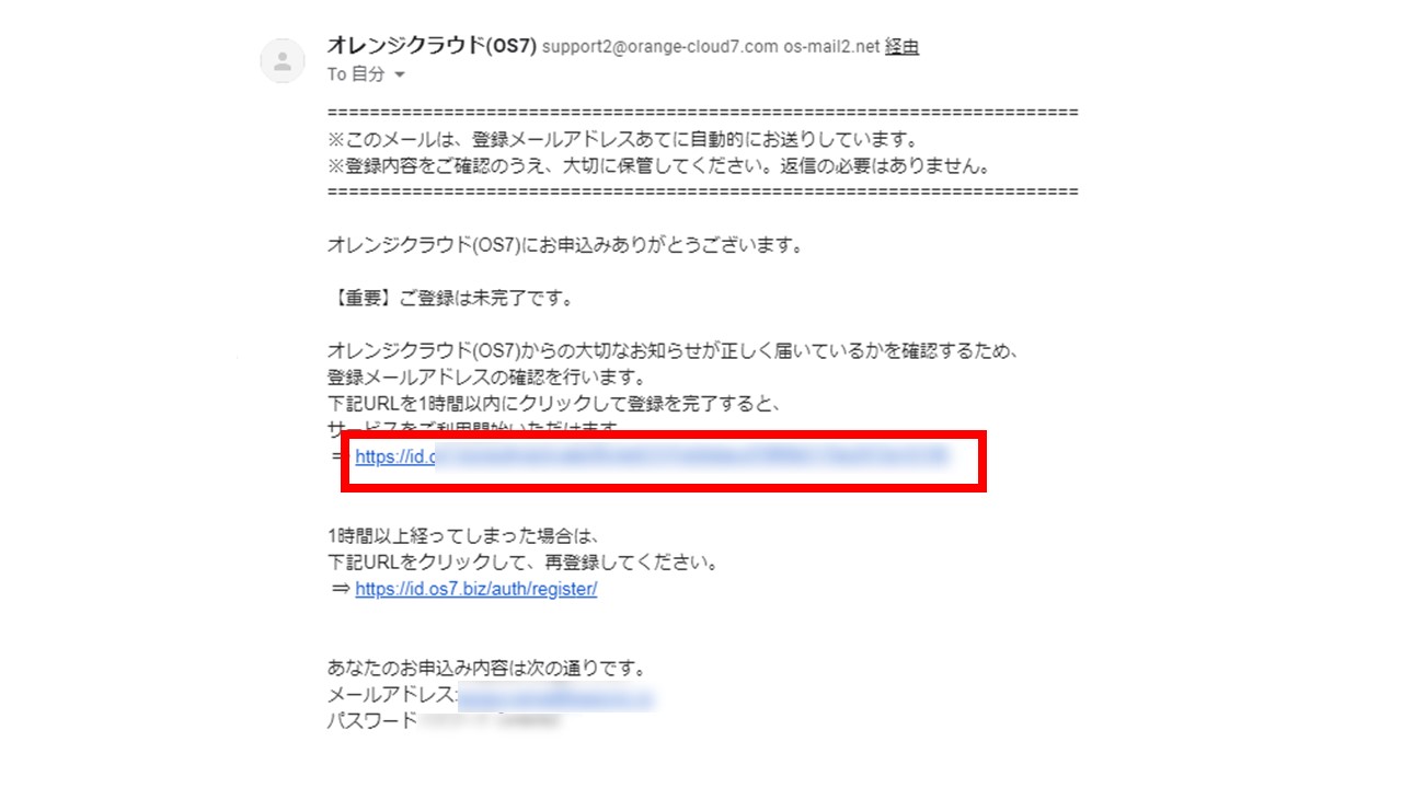 仮登録確認メールを開いて赤枠内のリンクをクリックすれば、本登録が完了します。