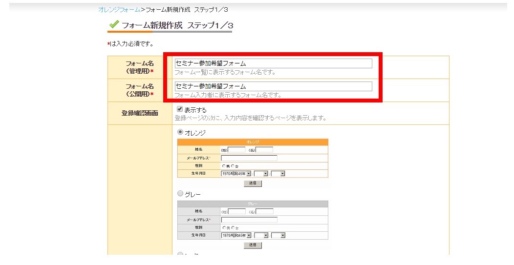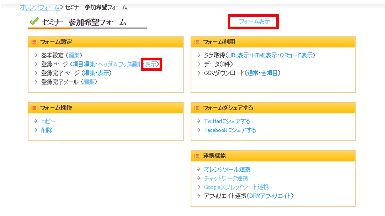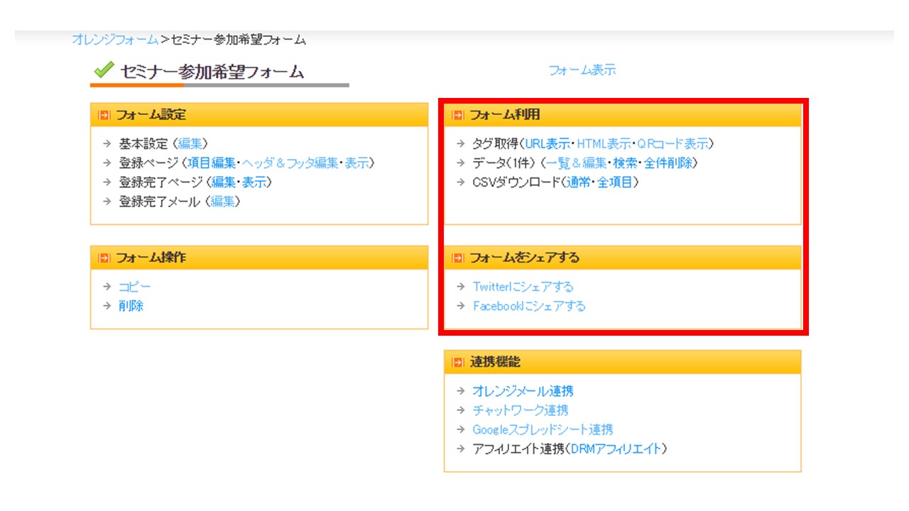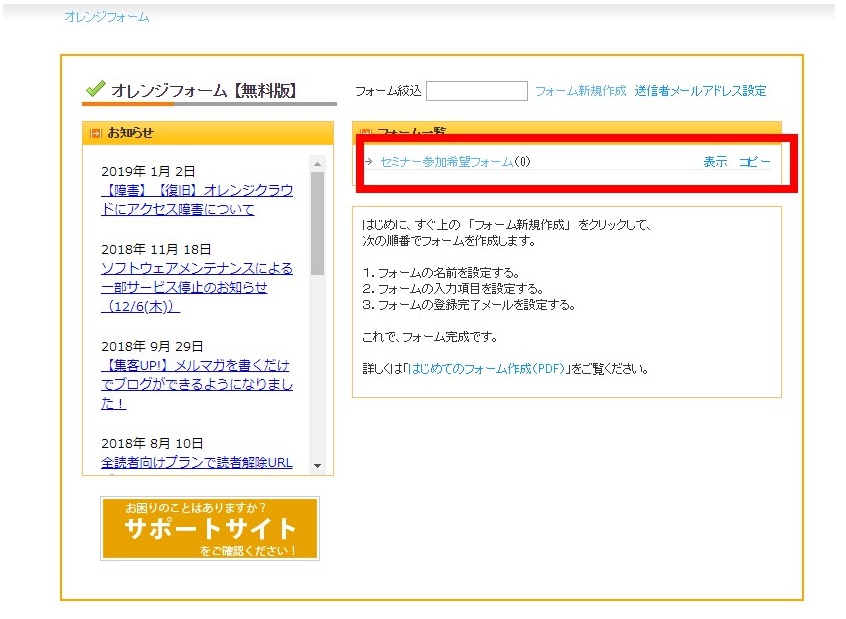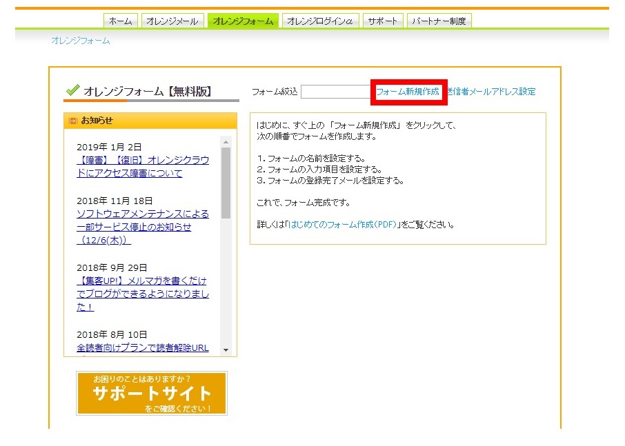 【オレンジフォーム】をクリックし、フォームの新規作成を行います。