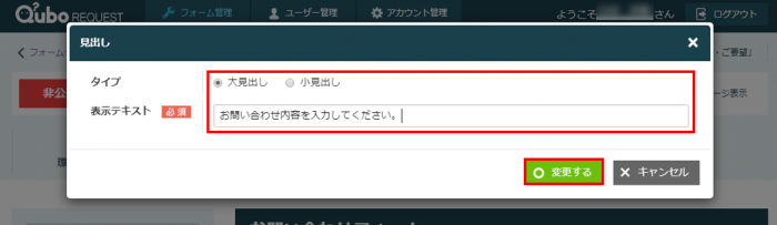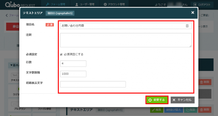 【〇変更する】をクリックすると、フォーム作成画面に反映されます。
