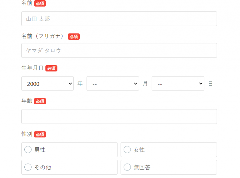 など、テキスト入力が不要な項目は可能な限り選択式に置き換えるのがおすすめです。