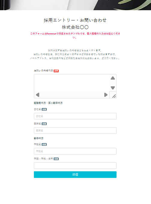 formrun(フォームラン)は、プログラミング知識がない方でも、マウス操作中心で採用フォームを作成・公開できるフォーム作成ツールです。