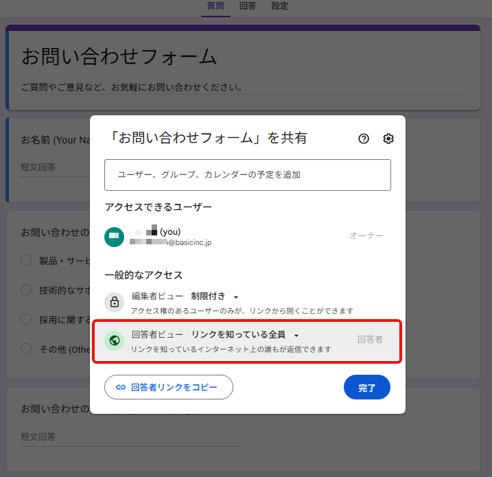 フォームの共有方法を詳しく知りたい方は、こちらのページをご覧ください。