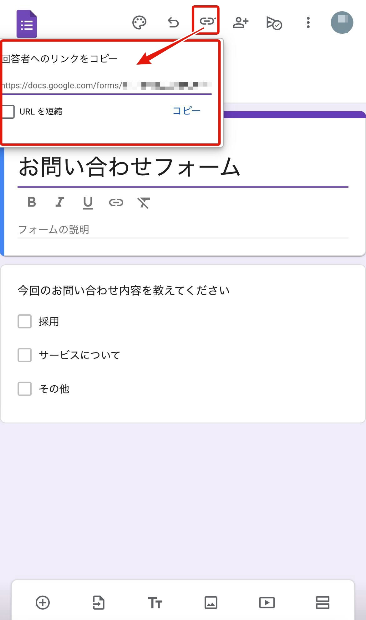 スマホでGoogleフォームのURLを貼り付ける方法は、以下の手順で行います。
