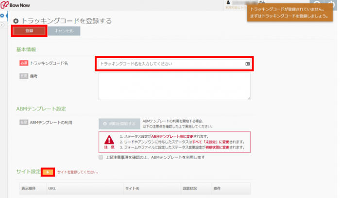 トラッキングコードの登録はBowNowの初期設定にあたるもので、登録することでフォーム作成やリード管理機能などが利用できるようになります。