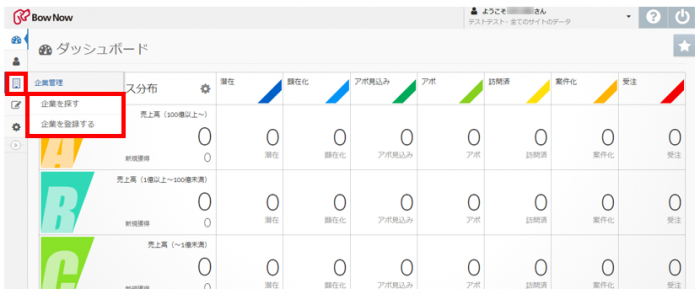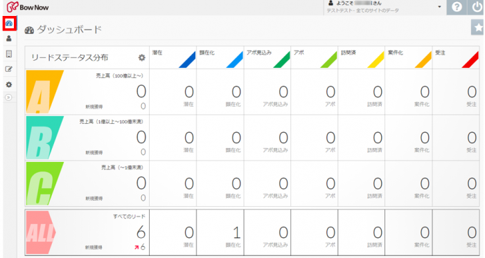 左側にあるメニューの一番上(メーターのマーク)にあり、BowNowへのログイン時に表示されます。