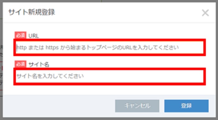 サイト設定は【+】ボタンをクリックすると上記画面が立ち上がるので、サイトURLとサイト名を入力して【登録】をクリックします。