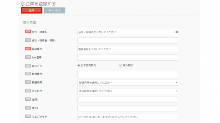 各項目に入力またはプルダウンから選択後、【登録】をクリックすると完了です。