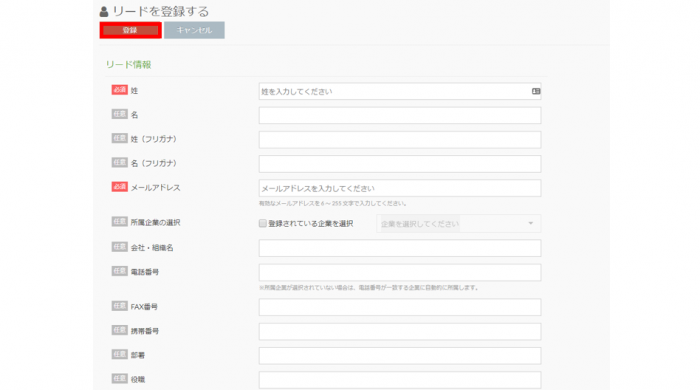 リード登録・管理リード情報の登録・管理(一括または個別で登録可能)