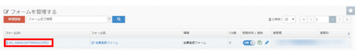 作成したフォームの一覧で【フォームID名】をクリックするとポップアップで反映用のコードが表示されるので、コピーをしてWebサイトに埋め込めれば設置完了です。