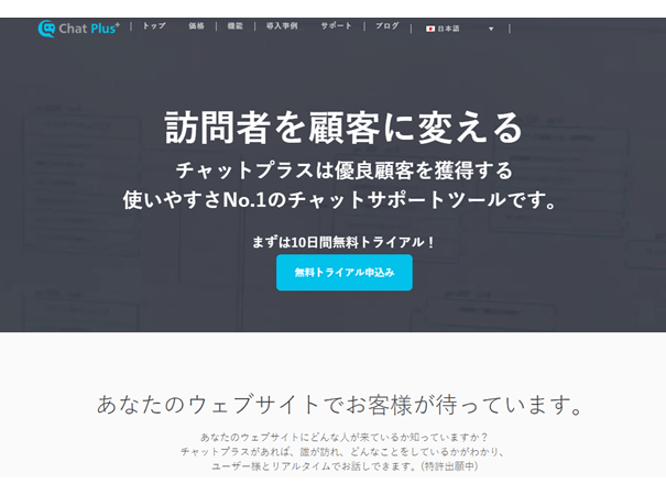 チャットプラスは、簡単なタグを埋め込むだけでサイトを訪問したユーザーとリアルタイムで会話できるチャットサポートツールです。