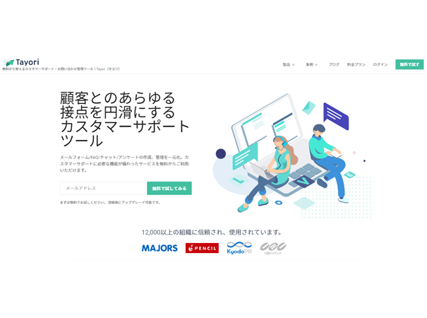 Tayori(タヨリ)はメールフォームやチャット、FAQ、アンケート作成など、カスタマーサポートに必要な機能を備えたツールです。