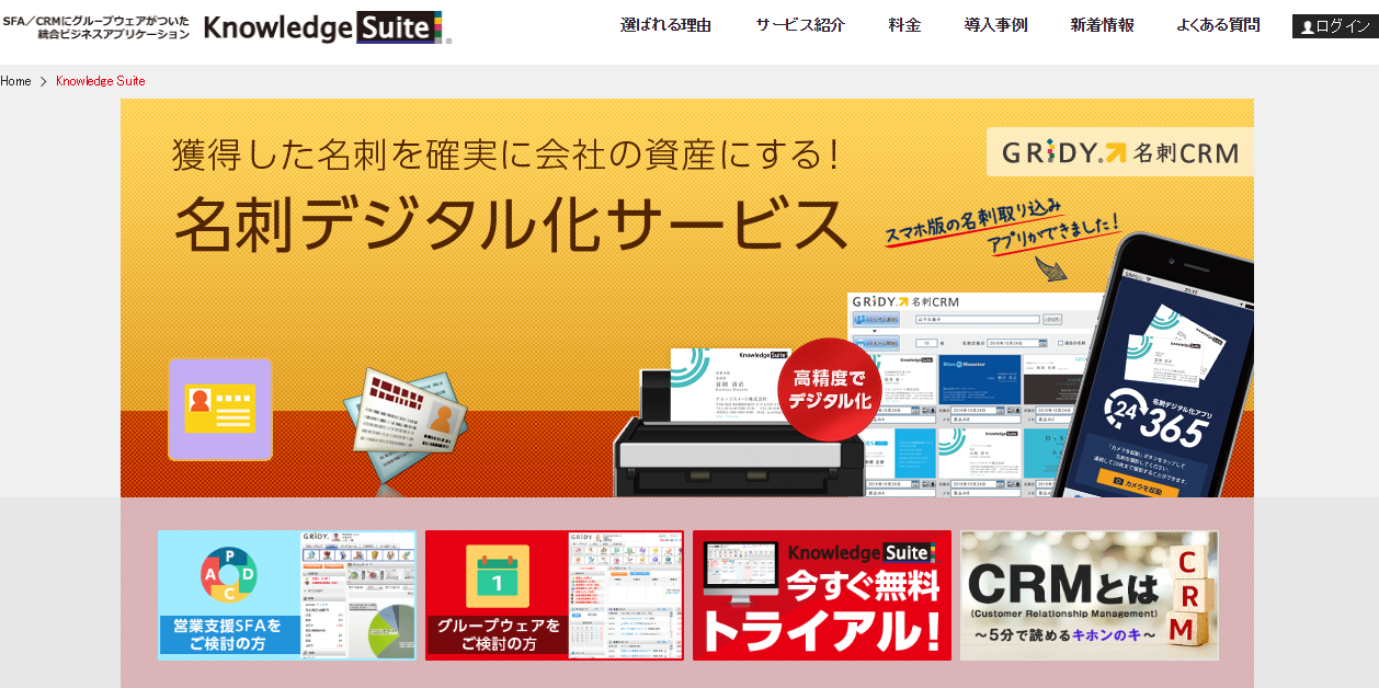また、名刺をデジタル化できる「GRIDY 名刺CRM」やデータ分析に役立つ「GRIDY BI」なども合わせて利用可能です。