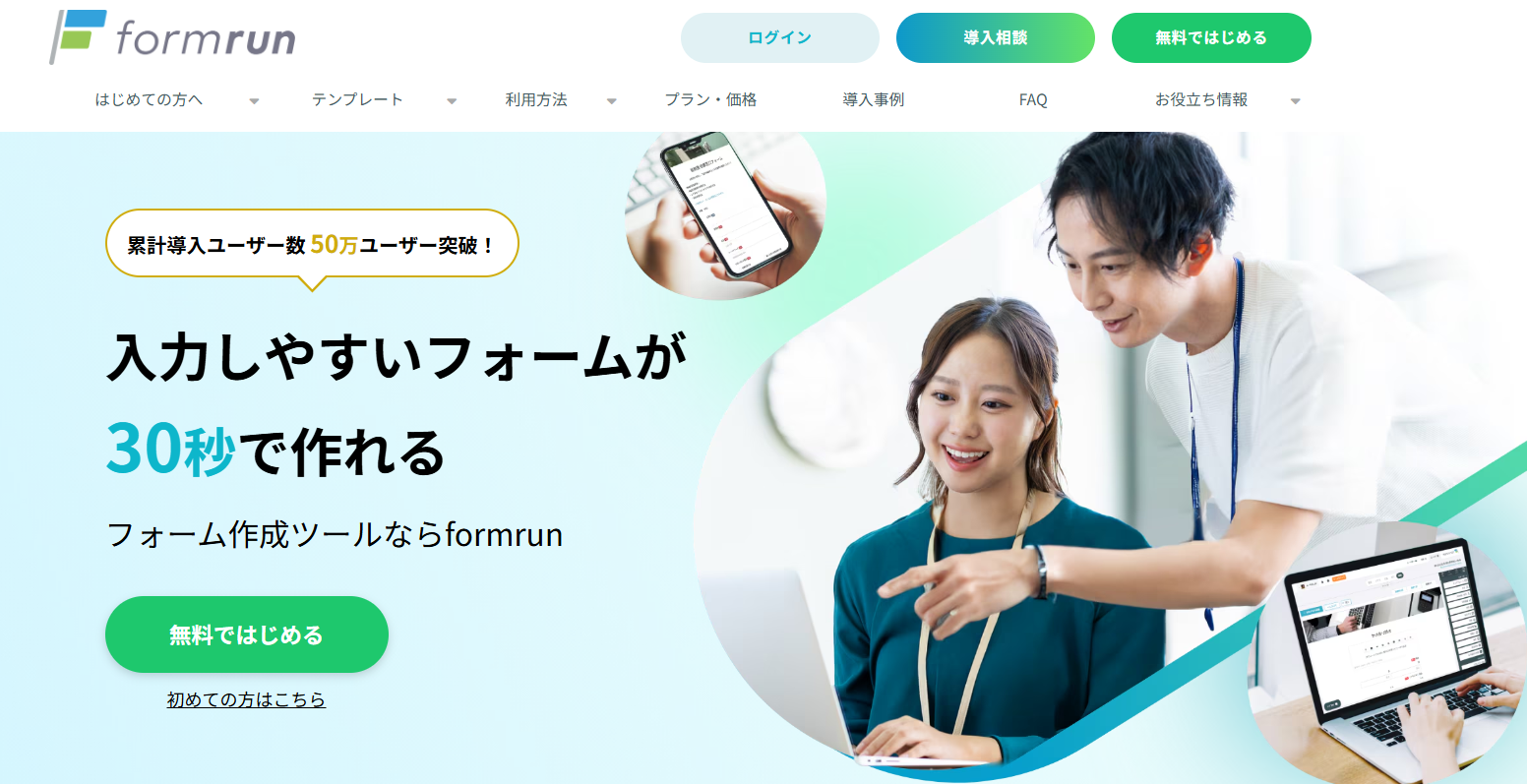 ▼ フォーム作成ツールなら50万ユーザー突破のformrunがおすすめ