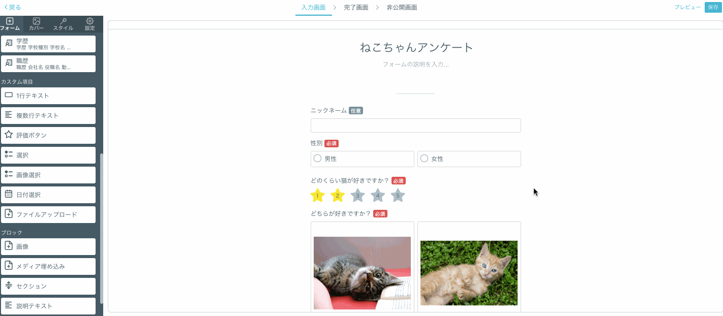 イメージにより直感的に回答を促すことができる「画像選択コンポーネント」と併せて使うのもおすすめです。