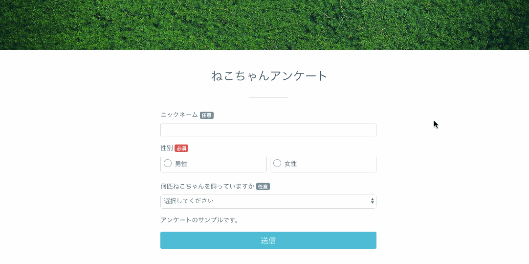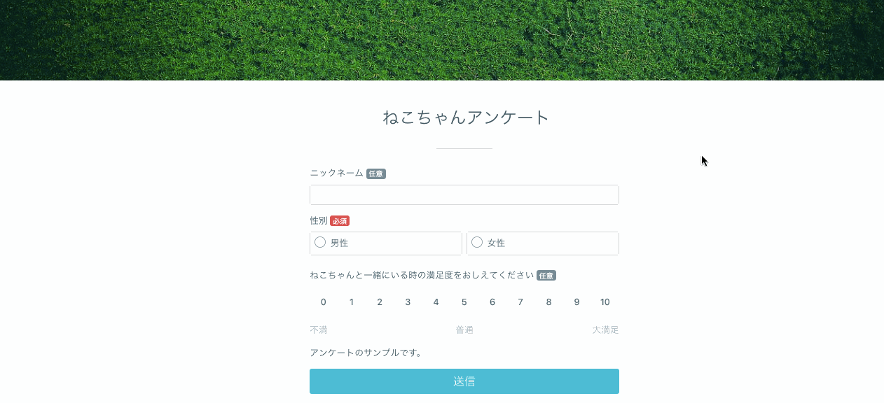 サービスへの満足度調査やアンケートなど、ユーザーに評価を求めるフォーム用途でご利用ください。