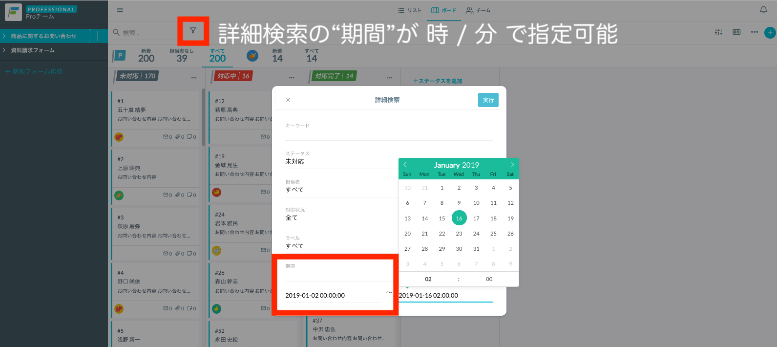 数多くの顧客を管理されている場合は、こちらから詳細な日時検索を行なってください。